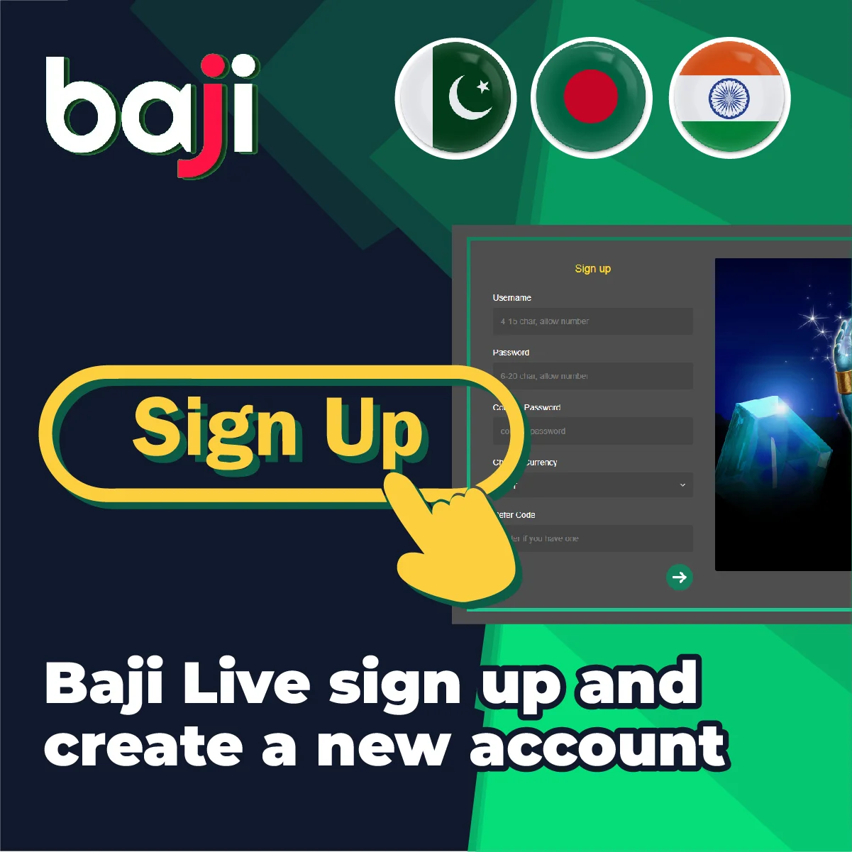 In order to sign up for Baji Live, you need to visit the official website of the company, click on the “Sign Up” button and fill out the registration form.